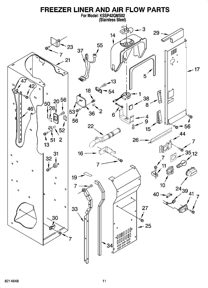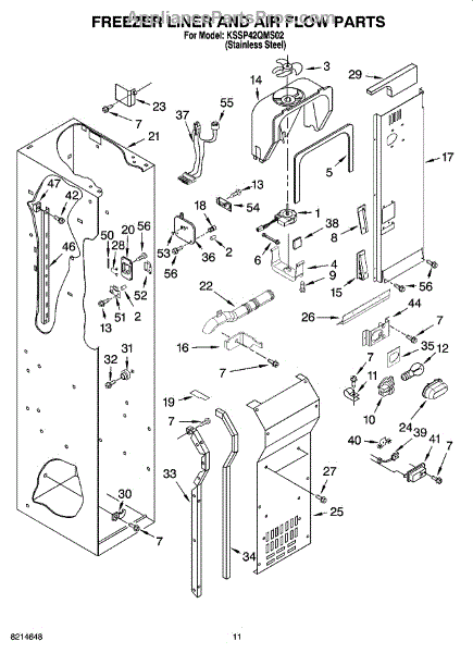 This fan scroll is the plastic housing that surrounds the evaporator fan in the freezer section. It directs air across the evaporator coils and into the ducts, helping your refrigerator move cold air evenly and maintain stable temperatures.