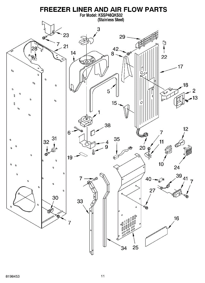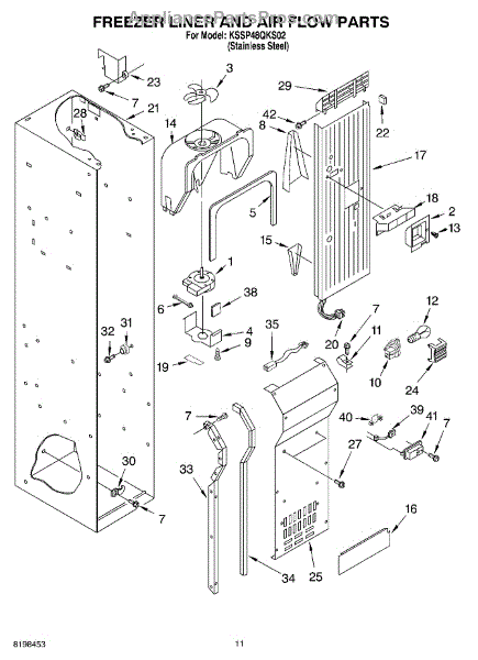 Parts for Kitchenaid KSSP48QKS02: 08 - Freezer Liner And Air Flow Parts