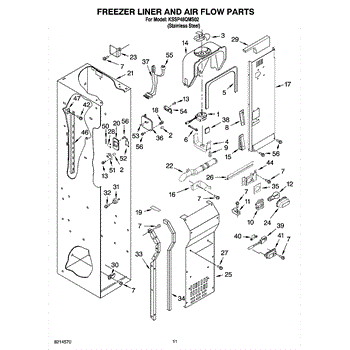 This fan scroll is the plastic housing that surrounds the evaporator fan in the freezer section. It directs air across the evaporator coils and into the ducts, helping your refrigerator move cold air evenly and maintain stable temperatures.