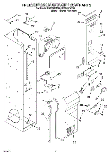 This fan scroll is the molded blower housing that directs airflow from the appliance fan for efficient cooling and ventilation. Replacing a damaged scroll restores proper air path and reduces airflow noise or performance issues. What it does