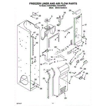 This fan scroll is the molded blower housing that directs airflow from the appliance fan for efficient cooling and ventilation. Replacing a damaged scroll restores proper air path and reduces airflow noise or performance issues. What it does