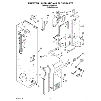 This fan scroll is the molded blower housing that directs airflow from the appliance fan for efficient cooling and ventilation. Replacing a damaged scroll restores proper air path and reduces airflow noise or performance issues. What it does