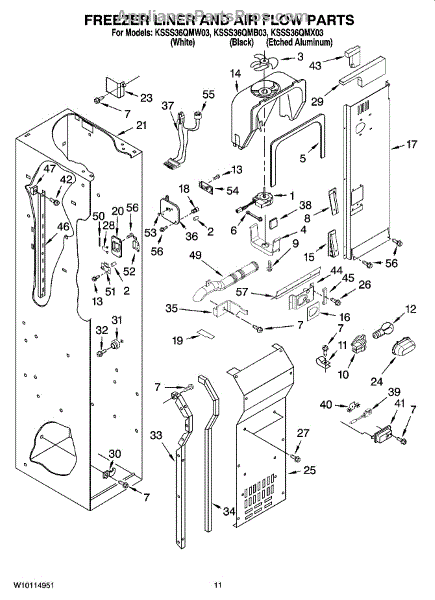 This fan scroll is the molded blower housing that directs airflow from the appliance fan for efficient cooling and ventilation. Replacing a damaged scroll restores proper air path and reduces airflow noise or performance issues. What it does