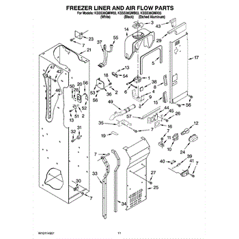 This fan scroll is the molded blower housing that directs airflow from the appliance fan for efficient cooling and ventilation. Replacing a damaged scroll restores proper air path and reduces airflow noise or performance issues. What it does