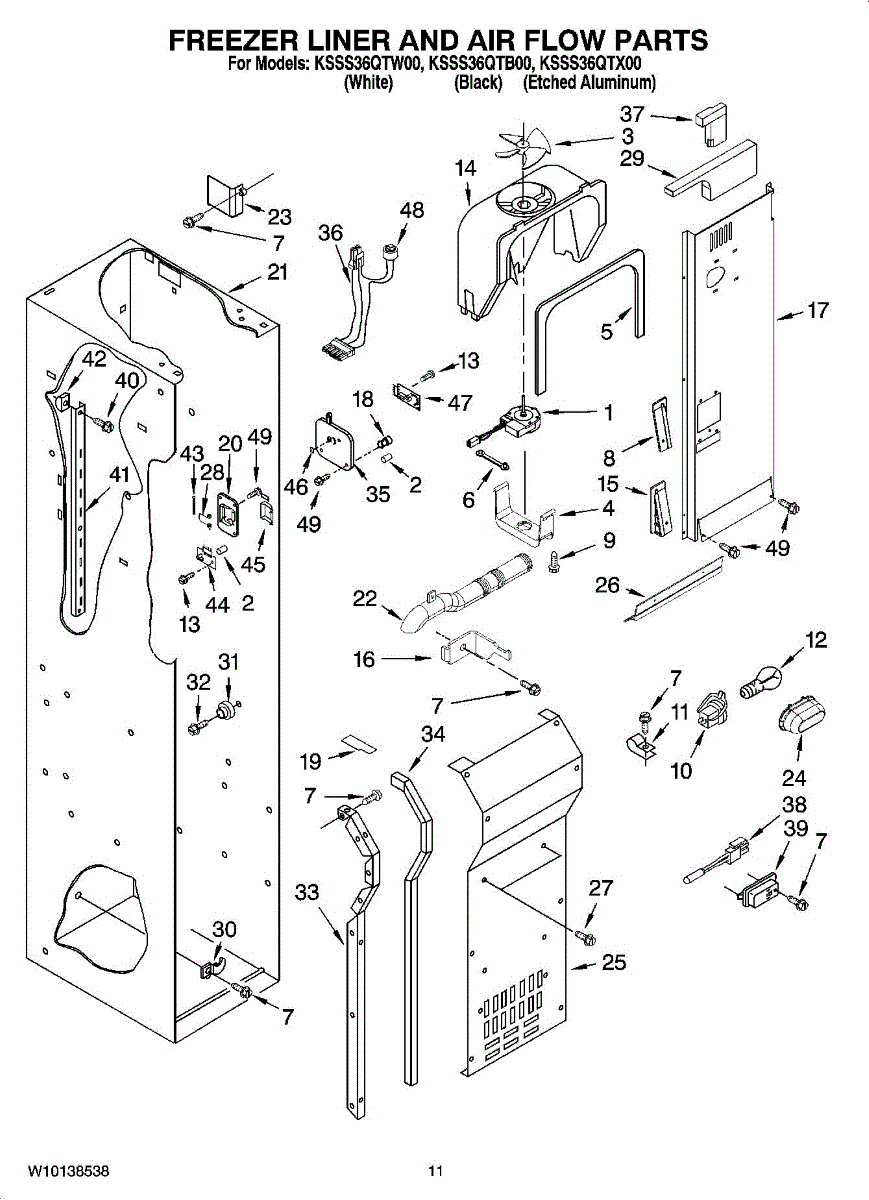 This fan scroll is the molded blower housing that directs airflow from the appliance fan for efficient cooling and ventilation. Replacing a damaged scroll restores proper air path and reduces airflow noise or performance issues. What it does