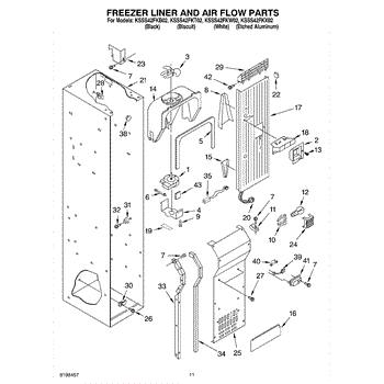 This fan scroll is the plastic housing that surrounds the evaporator fan in the freezer section. It directs air across the evaporator coils and into the ducts, helping your refrigerator move cold air evenly and maintain stable temperatures.