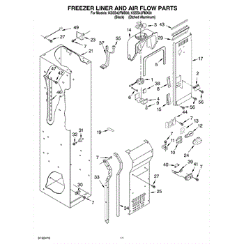This fan scroll is the plastic housing that surrounds the evaporator fan in the freezer section. It directs air across the evaporator coils and into the ducts, helping your refrigerator move cold air evenly and maintain stable temperatures.