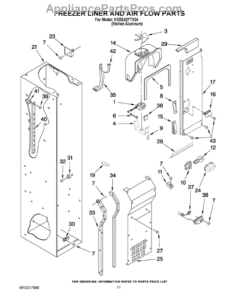 This fan scroll is the plastic housing that surrounds the evaporator fan in the freezer section. It directs air across the evaporator coils and into the ducts, helping your refrigerator move cold air evenly and maintain stable temperatures.