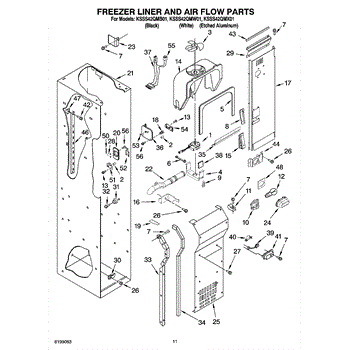This fan scroll is the plastic housing that surrounds the evaporator fan in the freezer section. It directs air across the evaporator coils and into the ducts, helping your refrigerator move cold air evenly and maintain stable temperatures.