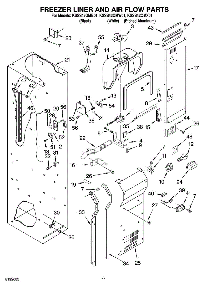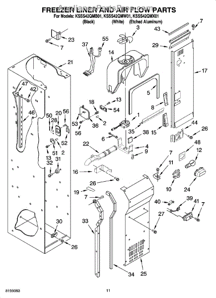 Parts for Kitchenaid KSSS42QMW01: 08 - Freezer Liner And Air Flow Parts
