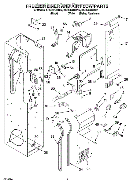 This fan scroll is the plastic housing that surrounds the evaporator fan in the freezer section. It directs air across the evaporator coils and into the ducts, helping your refrigerator move cold air evenly and maintain stable temperatures.