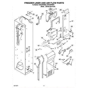 This fan scroll is the plastic housing that surrounds the evaporator fan in the freezer section. It directs air across the evaporator coils and into the ducts, helping your refrigerator move cold air evenly and maintain stable temperatures.