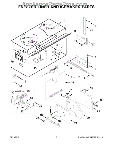 This ice maker cover shields the front of the ice maker assembly, protecting the module and moving parts from dust and accidental contact. Replacing a cracked or missing cover restores a clean, finished appearance and keeps components protected.