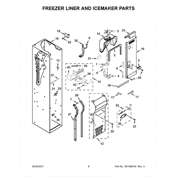 This fan scroll is the plastic housing that surrounds the evaporator fan in the freezer section. It directs air across the evaporator coils and into the ducts, helping your refrigerator move cold air evenly and maintain stable temperatures.