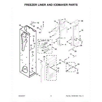 This fan scroll is the plastic housing that surrounds the evaporator fan in the freezer section. It directs air across the evaporator coils and into the ducts, helping your refrigerator move cold air evenly and maintain stable temperatures.