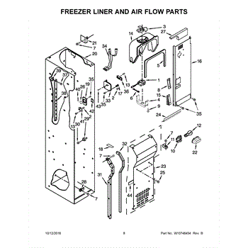 This fan scroll is the molded blower housing that directs airflow from the appliance fan for efficient cooling and ventilation. Replacing a damaged scroll restores proper air path and reduces airflow noise or performance issues. What it does