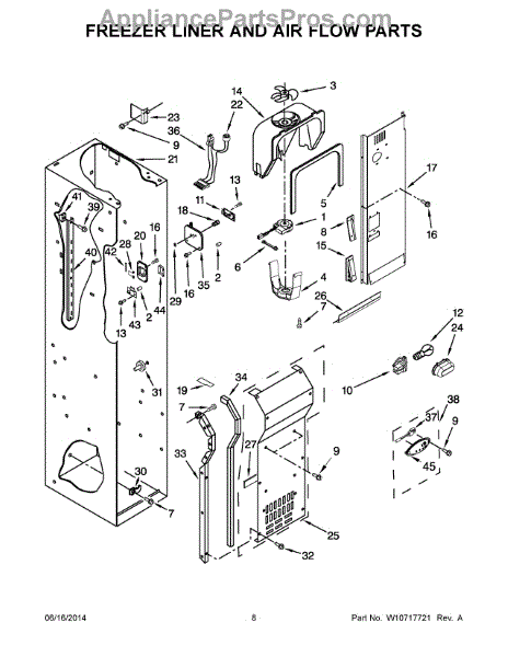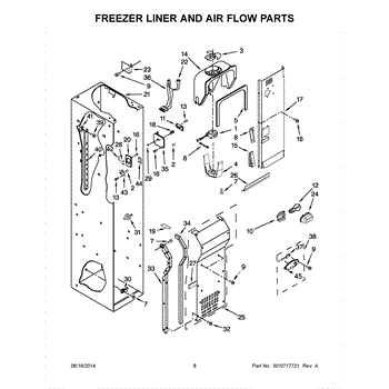 This fan scroll is the plastic housing that surrounds the evaporator fan in the freezer section. It directs air across the evaporator coils and into the ducts, helping your refrigerator move cold air evenly and maintain stable temperatures.