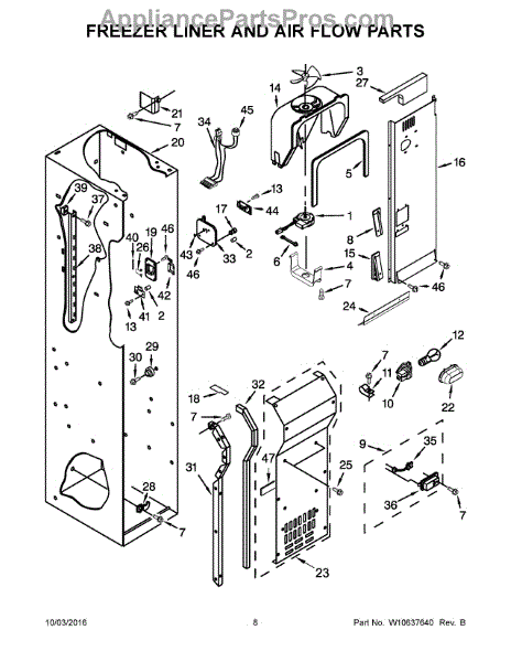 This evaporator cover replaces the internal housing panel that protects the evaporator in compatible Whirlpool refrigerators. It helps maintain proper airflow around the evaporator and supports efficient frost control for reliable cooling. What it does