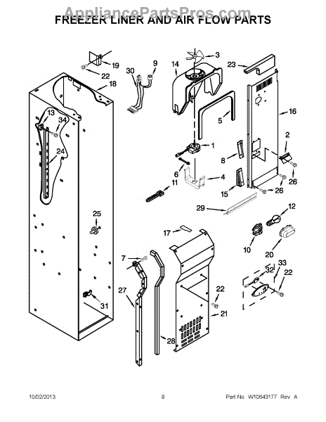 This fan scroll is the molded blower housing that directs airflow from the appliance fan for efficient cooling and ventilation. Replacing a damaged scroll restores proper air path and reduces airflow noise or performance issues. What it does