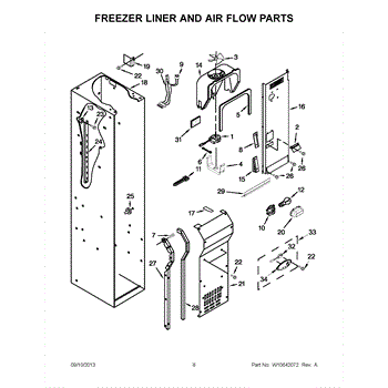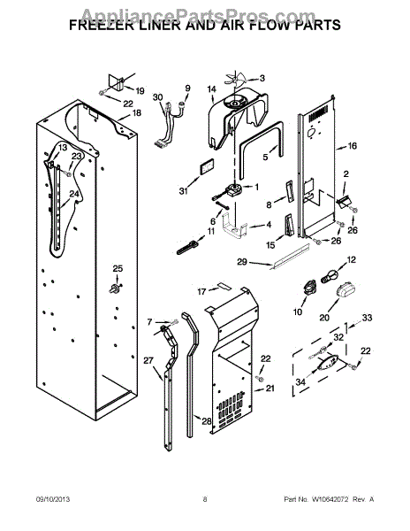 This fan scroll is the plastic housing that surrounds the evaporator fan in the freezer section. It directs air across the evaporator coils and into the ducts, helping your refrigerator move cold air evenly and maintain stable temperatures.