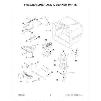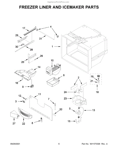Cracked ice bin causing jams or leaks? This refrigerator ice container stores cubes beneath the icemaker and guides them to the dispenser door.