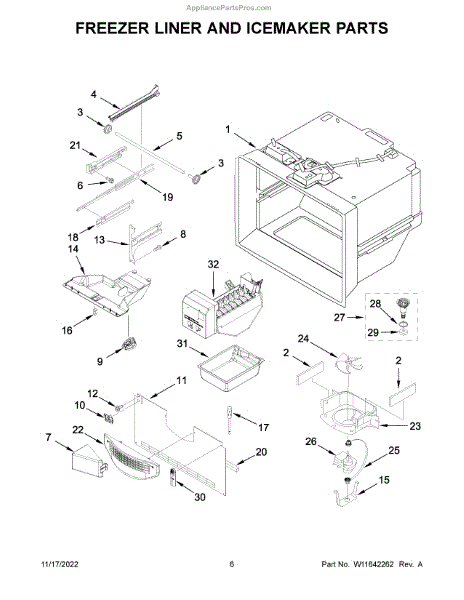 This replacement cradle secures the freezer basket inside the freezer compartment, restoring proper support and alignment so the basket slides and seats correctly. Designed to replace a damaged or broken bracket. What it does: