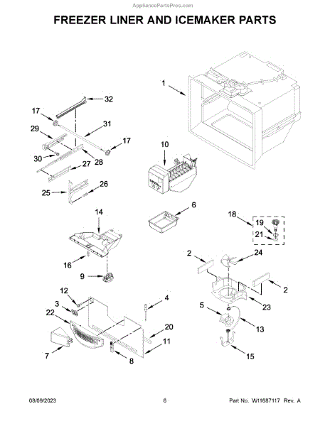 This ice container stores the ice your refrigerator makes and interfaces with the dispenser drive so cubes reach the door. Replacing a cracked or worn bin restores smooth, sanitary ice storage and dependable dispensing.