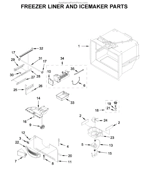 Note: This replacement icemaker has a plastic tray on the bottom. If you are replacing this part the original icemaker you have to remove the plastic tray from this icemaker so the bracket will connect to hold the icemaker in place