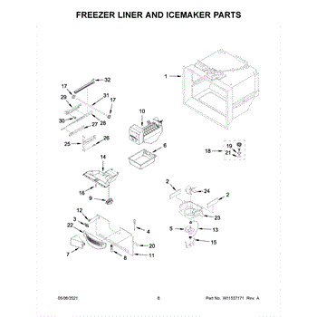 This ice container stores the ice your refrigerator makes and interfaces with the dispenser drive so cubes reach the door. Replacing a cracked or worn bin restores smooth, sanitary ice storage and dependable dispensing.