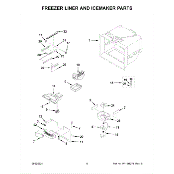 This ice container stores the ice your refrigerator makes and interfaces with the dispenser drive so cubes reach the door. Replacing a cracked or worn bin restores smooth, sanitary ice storage and dependable dispensing.