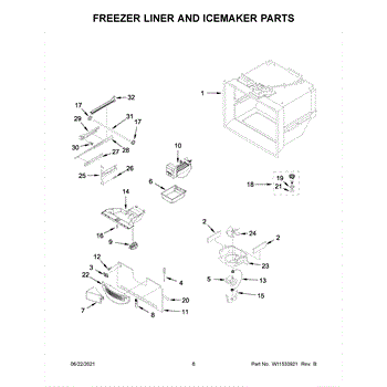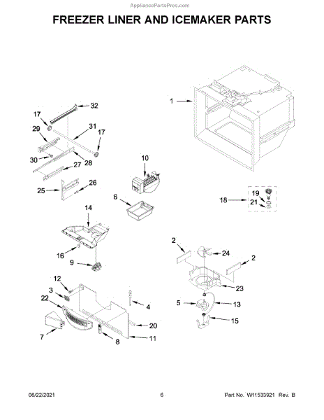This ice container stores the ice your refrigerator makes and interfaces with the dispenser drive so cubes reach the door. Replacing a cracked or worn bin restores smooth, sanitary ice storage and dependable dispensing.