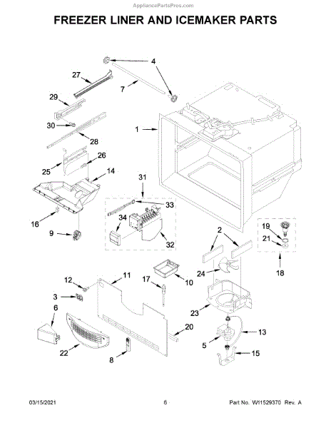This ice container stores the ice your refrigerator makes and interfaces with the dispenser drive so cubes reach the door. Replacing a cracked or worn bin restores smooth, sanitary ice storage and dependable dispensing.