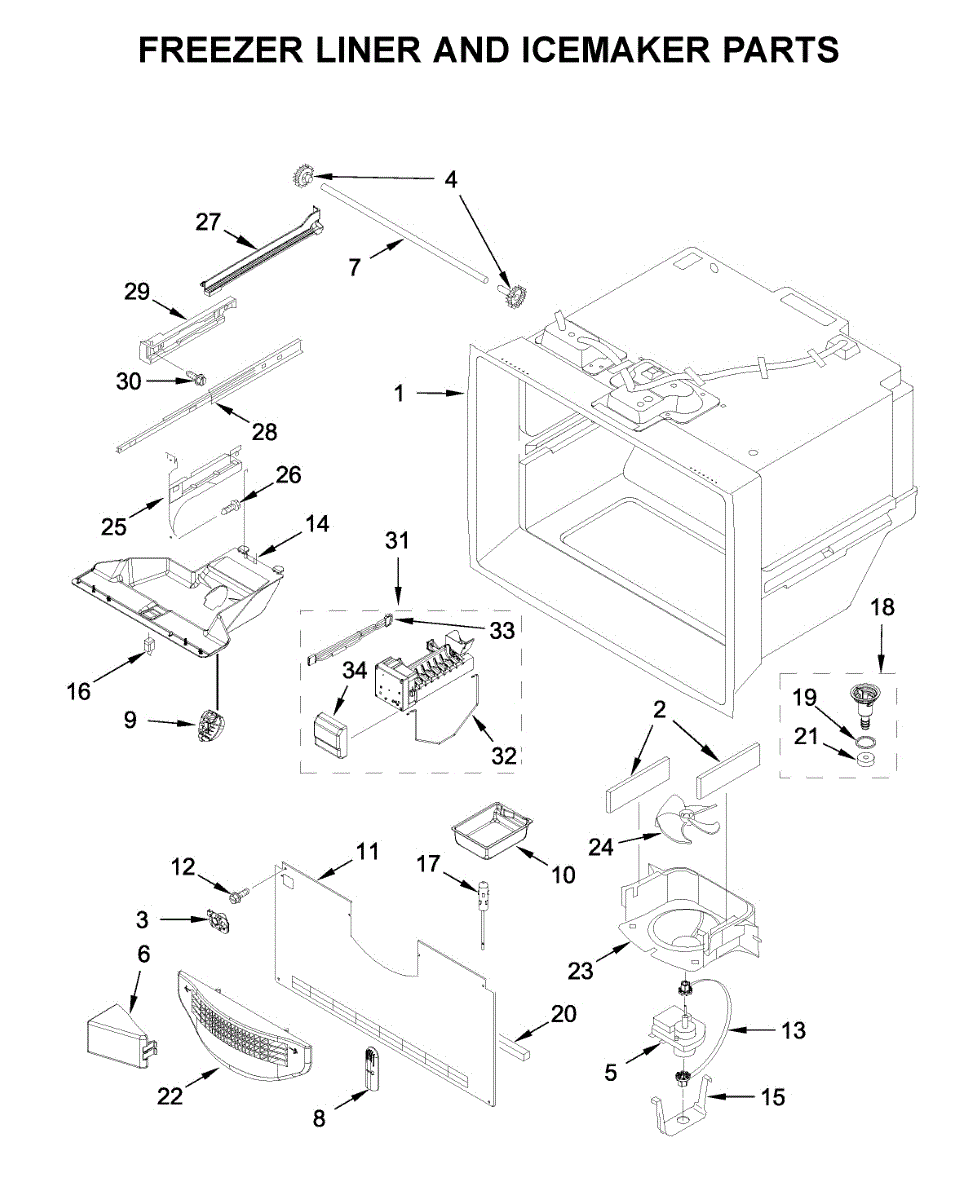 Parts for Whirlpool WRF532SMHZ03: Freezer Liner And Icemaker Parts