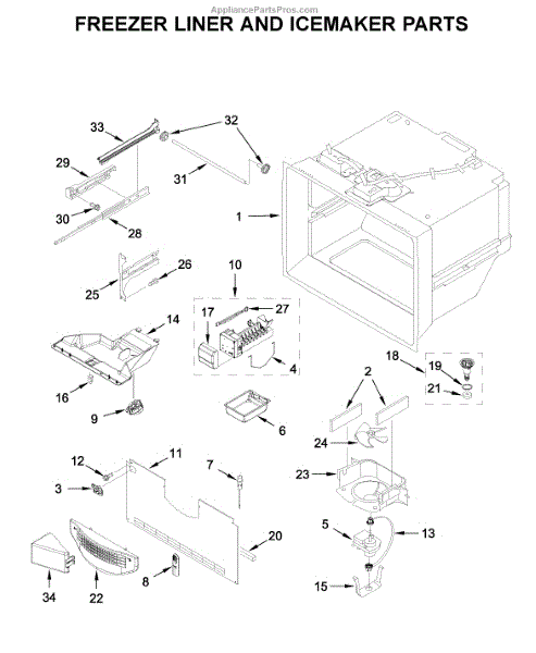 Parts for Whirlpool WRF535SMHB02: Freezer Liner And Icemaker Parts