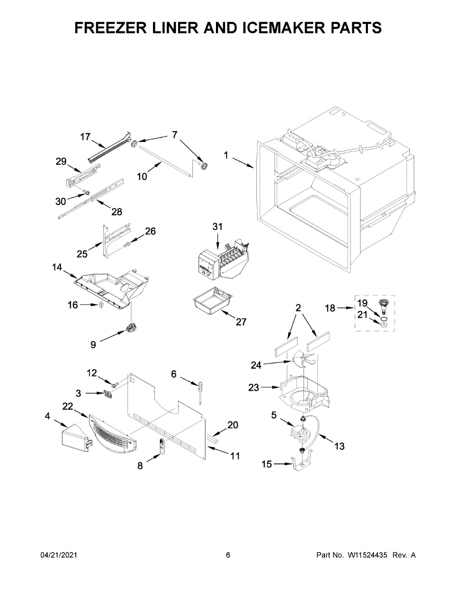 This ice container stores the ice your refrigerator makes and interfaces with the dispenser drive so cubes reach the door. Replacing a cracked or worn bin restores smooth, sanitary ice storage and dependable dispensing.