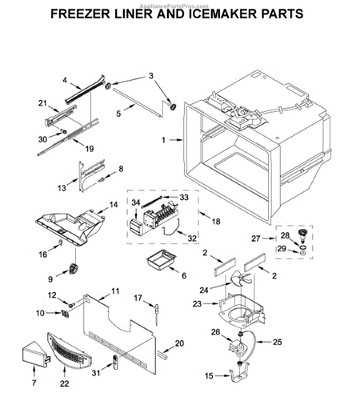 This ice container stores the ice your refrigerator makes and interfaces with the dispenser drive so cubes reach the door. Replacing a cracked or worn bin restores smooth, sanitary ice storage and dependable dispensing.