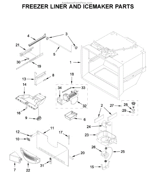 This ice container stores the ice your refrigerator makes and interfaces with the dispenser drive so cubes reach the door. Replacing a cracked or worn bin restores smooth, sanitary ice storage and dependable dispensing.