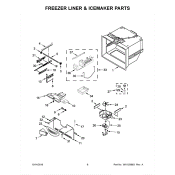 This ice container stores the ice your refrigerator makes and interfaces with the dispenser drive so cubes reach the door. Replacing a cracked or worn bin restores smooth, sanitary ice storage and dependable dispensing.