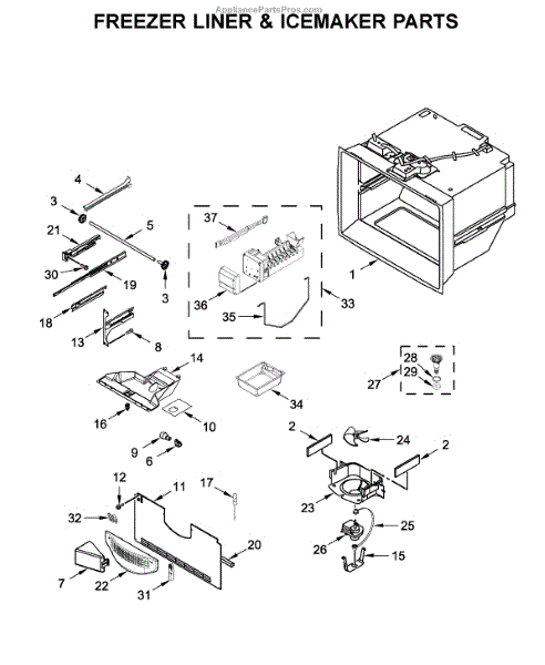 Note: This replacement icemaker has a plastic tray on the bottom. If you are replacing this part the original icemaker you have to remove the plastic tray from this icemaker so the bracket will connect to hold the icemaker in place