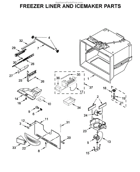 Note: This replacement icemaker has a plastic tray on the bottom. If you are replacing this part the original icemaker you have to remove the plastic tray from this icemaker so the bracket will connect to hold the icemaker in place