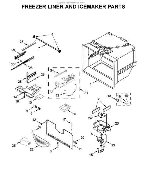 Note: This replacement icemaker has a plastic tray on the bottom. If you are replacing this part the original icemaker you have to remove the plastic tray from this icemaker so the bracket will connect to hold the icemaker in place