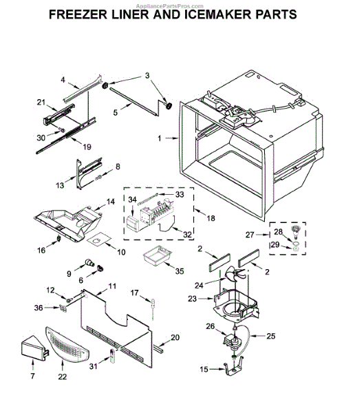 This ice container stores the ice your refrigerator makes and interfaces with the dispenser drive so cubes reach the door. Replacing a cracked or worn bin restores smooth, sanitary ice storage and dependable dispensing.
