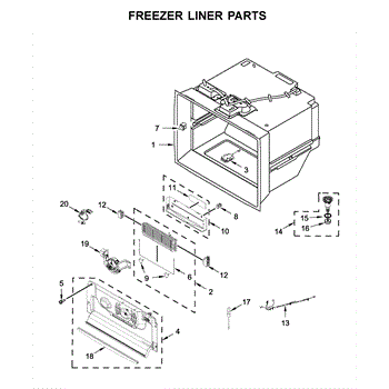 The Drain Funnel is an OEM part for Whirlpool French door refrigerators. It serves as the sloped plastic strainer that guides water from the evaporator coils s it into the drip pan below.