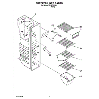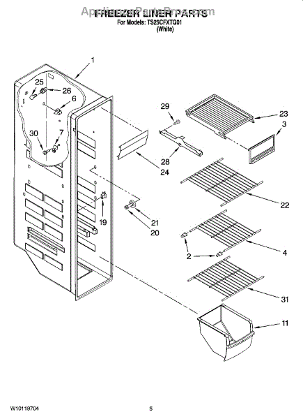 Parts for Estate TS25CFXTQ01: 04 - Freezer Liner Parts