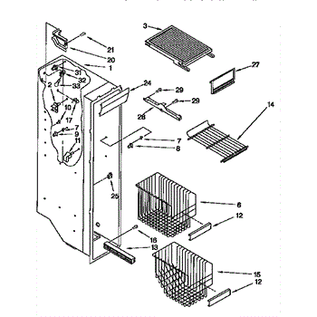 Parts for Kenmore 106.9555750 (1069555750, 106 9555750): Freezer Liner Parts