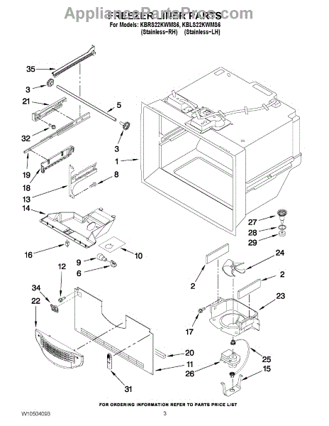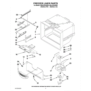 Parts for Kitchenaid KBRS22KWMS6: 02 - Freezer Liner Parts