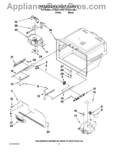 Parts for Kitchenaid KFIS25XVWH4: 06 - Freezer Liner Parts
