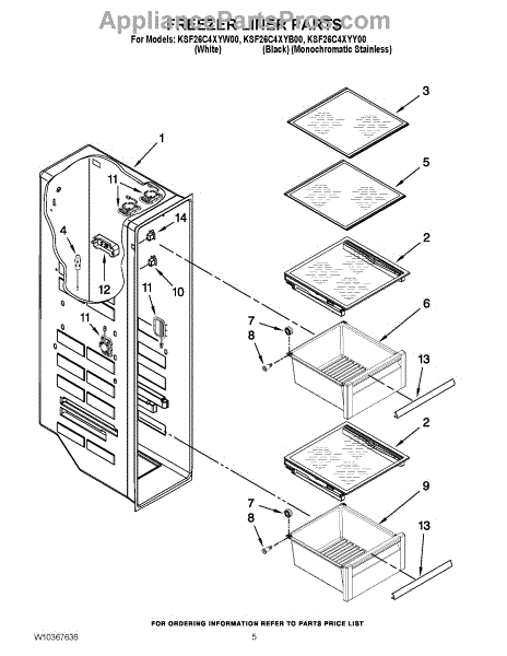 Parts for Kitchenaid KSF26C4XYW00: 04 - Freezer Liner Parts