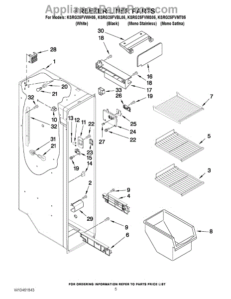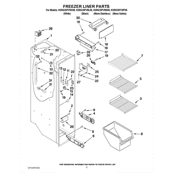Parts for Kitchenaid KSRG25FVMT05: 04 - Freezer Liner Parts