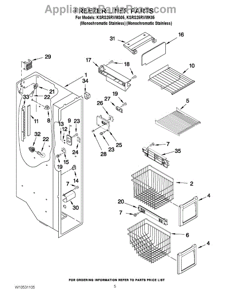 Parts for Kitchenaid KSRS25RVMS05: 04 - Freezer Liner Parts
